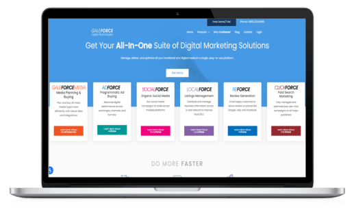 GaleForce Digital is a software development company that specializes in crafting innovative marketing solutions for advertising agencies, franchises, and multi-location businesses. When the client first approached us, they were a new startup with no established client base, brand identity, or working website. They wanted to get their name and products out there, but didn’t know how.